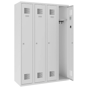 Der Büro-Aktenschrank Sbm 212 mlx zeichnet sich durch sein universelles Design und sein breites Einsatzspektrum aus. Er wird von unseren Kunden erfolgreich als Sportschrank eingesetzt. Dieses vielseitige Metallmöbel verfügt über eine frei konfigurierbare Ausstattung, die unter anderem Folgendes umfasst: Haken zum Aufhängen von Sportgeräten, spezielle Regale, Rahmenschublade mit Trennwänden. Es ist auch möglich, eine abschließbare Aufbewahrungsbox für Kleingeräte an der Schublade anzubringen. Die Türen des Büro-Aktenschranks sbm 212 mlx sind perforiert und lassen sich vollständig öffnen, was eine gute Luftzirkulation gewährleistet. Außerdem ist der Metallschrank mit einem an zwei Stellen verriegelten Schlüsselschloss versehen, so dass Unbefugte keinen Zugriff auf den Inhalt haben. Die Metallmöbel sind in einem gedämpften, hellgrauen Farbton gehalten, der sich für alle Arten von Arrangements eignet. Sie können aber auch die Farbe der Möbel individuell aus einer Palette von 16 Farben wählen, um Ihrer Einrichtung eine persönliche Note zu verleihen.