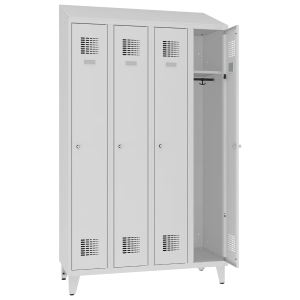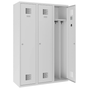 Sum 320 st ist ein doppelter Schulschrank. Es wurde als Ergänzung zur Grundschule geschaffen. Der Garderobenschrank ist für Studenten bestimmt und hat zwei Türen. Beide Kammern sind mit einem Zylinderschloss verschlossen. In jedem Schulschließfach befinden sich Regale für praktische Schmuckstücke. Dadurch können Sie Bücher, Accessoires, Schuhe, Kleidung, Notizbücher oder Sandwiches frei verstecken. In der Mitte der Schulmöbel befindet sich eine Bar mit Haken und einem Haken für die Tür. Metallmöbel werden die Erwartungen jedes Kunden zu 100% erfüllen.