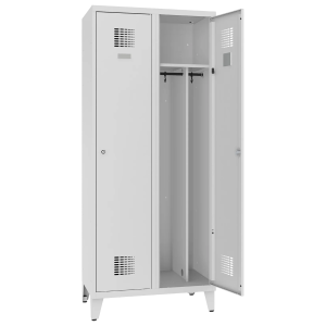 Sum 320 st ist ein Produkt, das für kleinere Schulen oder Bildungseinrichtungen entwickelt wurde. Das Ganze ist jedoch in einer Technologie pulverbeschichtet, die Korrosion und versehentliche Beschädigungen verhindert. Dadurch ist ein Metallmöbel eine Investition für Jahre, die sich extrem schnell amortisiert. Alle Schulmöbel dieses Herstellers sind für die Nutzung durch Kinder konzipiert. Das bedeutet, dass sie in einem viel besseren Standard erstellt wurden als beispielsweise soziale Möbel, die vorschriftsmäßig hergestellt werden. Ausstattung für Schulen ist noch ein Qualitätsregal höher. Im doppelten Schulschließfach können Sie persönliche Gegenstände, Kleidung und Schuhe des Schülers aufbewahren. Der Garderobenschrank für Studenten hat zwei Türen. Beide werden jedoch mit einem Zylinderschloss verschlossen, wodurch Sie den Behälter einfach und schnell öffnen und schließen können. Im Schulschließfach können Sie Kleinigkeiten, Schuhe und Kleidung unterbringen und organisieren. Außerdem können Sie ein Handtuch an die Tür hängen. Die Schulmöbel sind mit einer Stange mit Haken für Jacken oder Kleidung und einem separaten Türhaken für Handtücher ausgestattet.