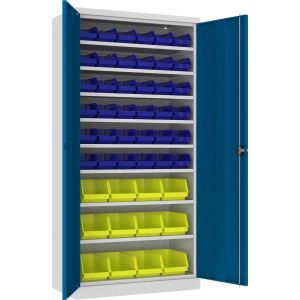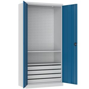 Die entsprechende Einrichtung sollte es den Mitarbeitern ermöglichen, sich vor und nach der Arbeit umzuziehen oder in der Pause ein zweites Frühstück einzunehmen. Dazu ist es notwendig, eine Reihe spezifischer Möbelstücke zur Verfügung zu stellen, wie z. B. eine Bank zum Wechseln der Schuhe oder persönliche Schließfächer für die Mitarbeiter zur Aufbewahrung privater Kleidung und Gegenstände. Ein Beispiel für einen solchen Metallschrank ist das Modell MSU 61, das vier feste Fächer und einen Kleiderbügel umfasst. Darin kann der Arbeitnehmer unter anderem seine Kleidung, seinen Rucksack, seine Schuhe und andere kleine Gegenstände aufbewahren. Es gibt auch Platz für Reinigungsmittel, die nach einer Schicht unter der Dusche gebraucht werden. Der Metallschrank MSU 61 ist hoch. So kann der gesamte Raum vom Boden bis zur Decke genutzt werden. Dadurch wird der Platz im Schrank voll ausgenutzt. Gleichzeitig ist er sehr geräumig, so dass praktisch alles untergebracht werden kann, was ein Arbeitnehmer zur Arbeit mitbringt, einschließlich eines zweiten Frühstücks und Kleidung zum Wechseln. Wenn man ein Dutzend dieser Schränke nebeneinander aufstellt, kann man den Bedürfnissen aller Mitarbeiter gerecht werden. Zusätzliche Öffnungen unten und oben an der Rückwand sorgen für Luftzirkulation, um unangenehme Gerüche und mögliche Feuchtigkeitsansammlungen im Inneren zu vermeiden.